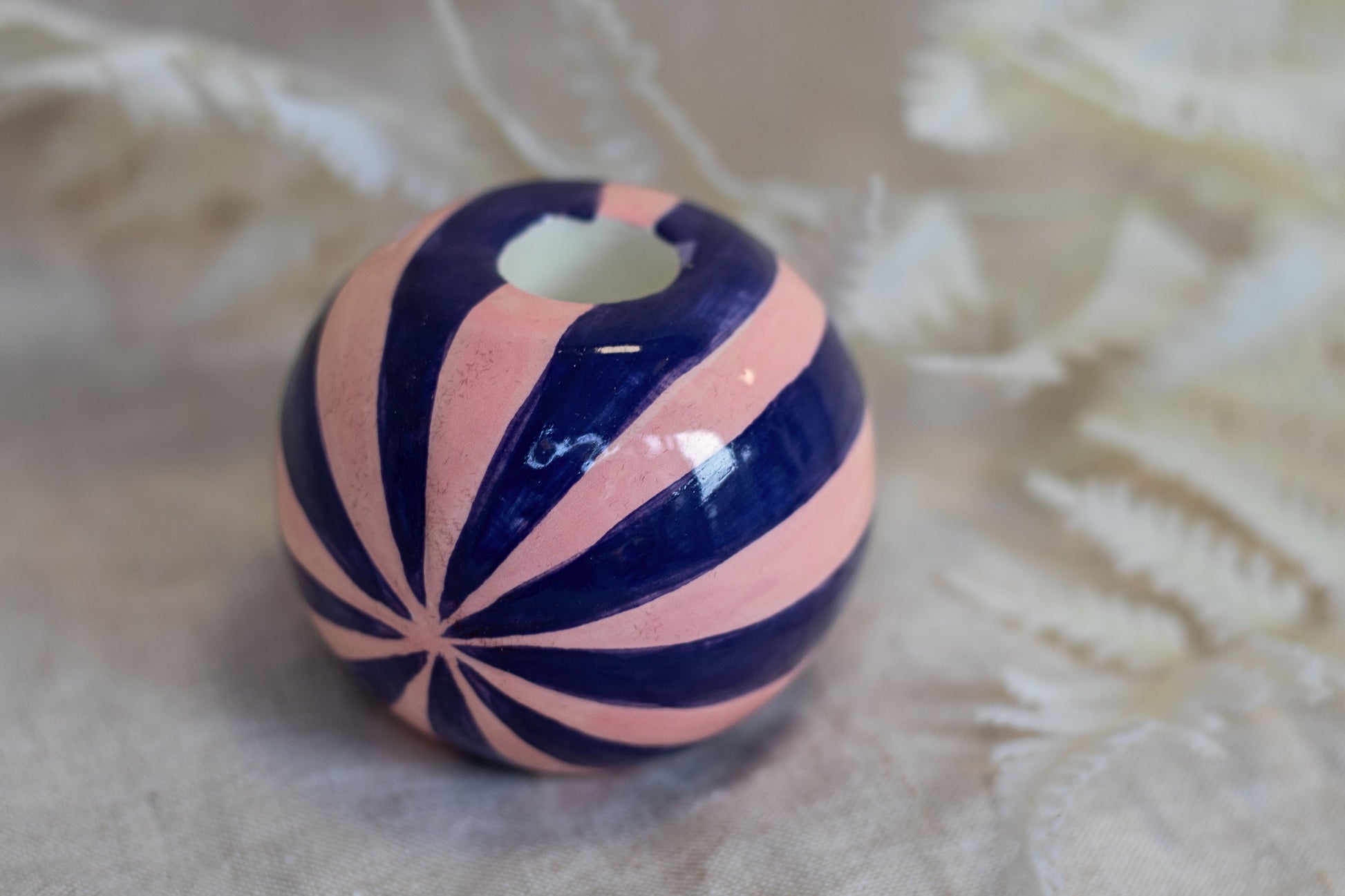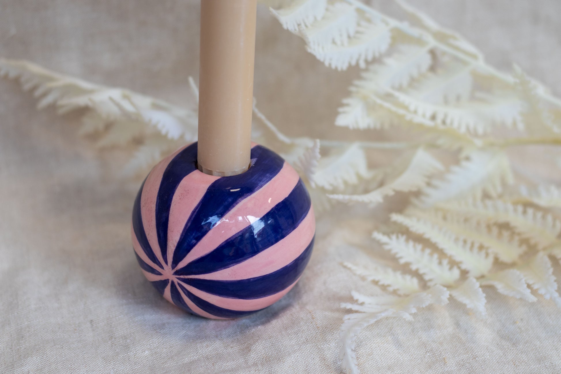 Kandelaar swirl in roze en paars. Afmeting van 7 cm. Leuk te combineren met onze sierpotjes!