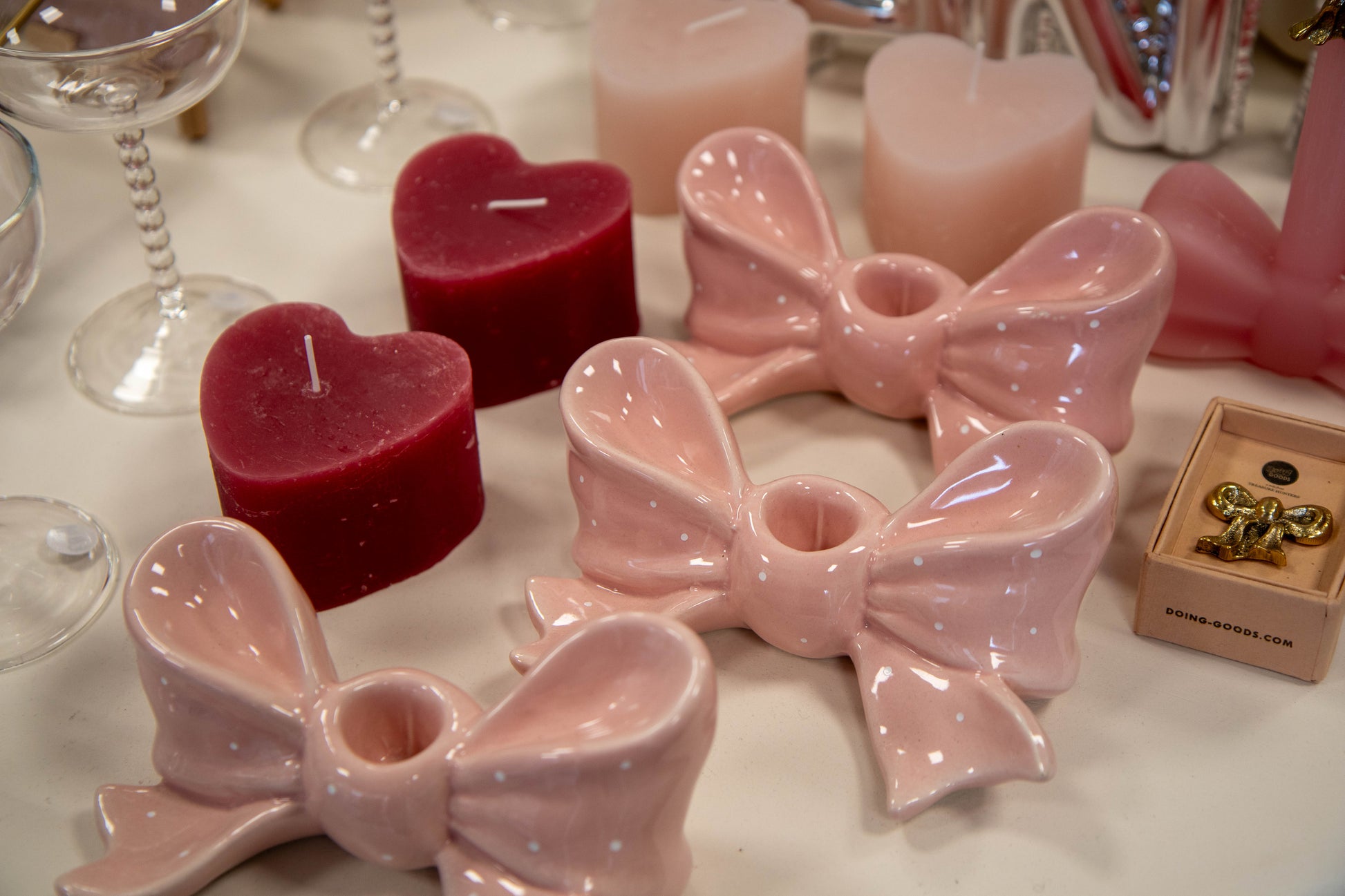 Deze kandelaar met een schattige roze strik maakt van elke kaars een statement! Leuk met je favoriete kaars.